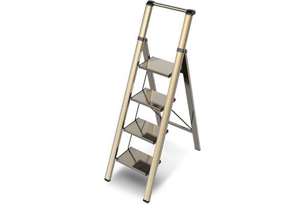 Folding Step Stool with Anti-Slip and Wide Pedal, Gold Ladder with Handgrip, Lightweight Aluminum Space Saving Stepladder for Home and Kitchen, 330 lbs Capacity