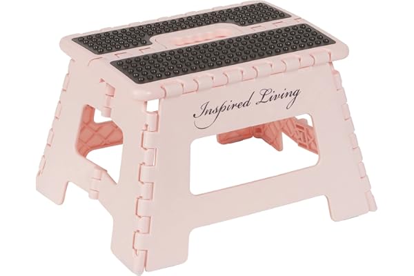Inspired Living 9" Folding Step Stool, Plastic Foldable Step Stools for Adults Holds Up To 330 lbs, Collapsible Folding Stool for Kitchen, Bathroom, Bedroom, Garden