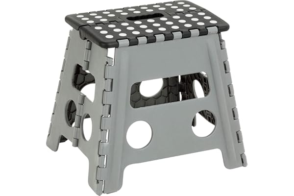 Non-Slip Textured Grip Surface, Foldable Space Saving Design, Carrying Handle, Holds Up to 300 Pounds, for Kitchen and Rest of Home, Black