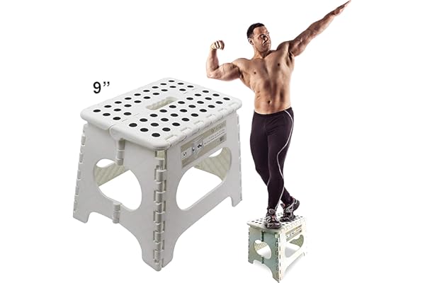 9 inch Non-Slip Footstool for Adults or Kids, Sturdy Safe Enough, Holds up to 300 Lb, Foldable Step Stools Storage/Open Easy, for Kitchen,Toilet,Office,RV