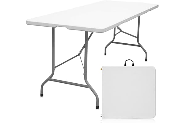 Byliable Folding Table 6ft Portable Heavy Duty Plastic Fold-in-Half Utility Foldable Table Plastic Dining Table Indoor Outdoor for Camping