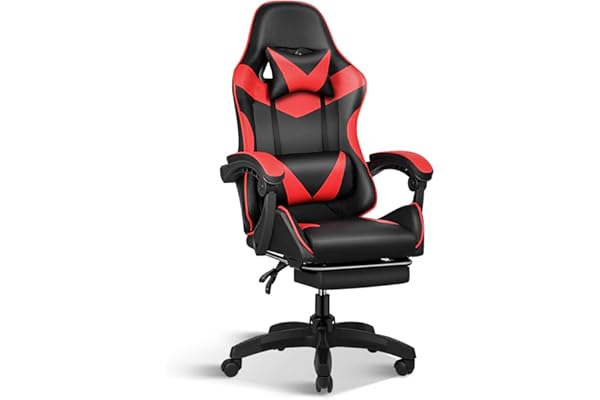 Backrest and Seat Height Adjustable Swivel Recliner Racing Office Computer Ergonomic Video Game Chair with Footrest and Lumbar Support, Red/Black