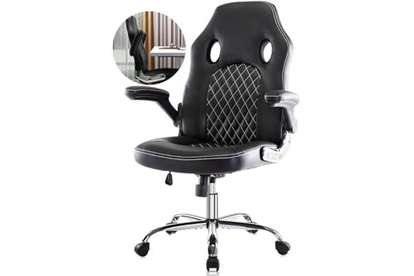BestOffice PC Gaming Chair Ergonomic Office Chair Desk Chair with Lumbar Support Flip Up Arms Headrest PU Leather Executive High Back Computer Chair for Adults Women Men (White)
