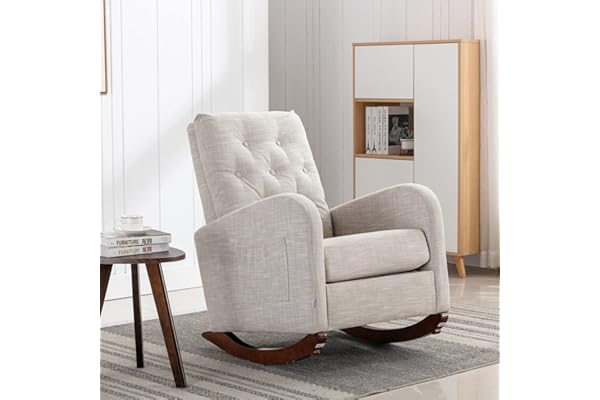 Dolonm Rocking Chair Mid-Century Modern Nursery Rocking Armchair Upholstered Tall Back Accent Glider Rocker for Living Room (Beige)