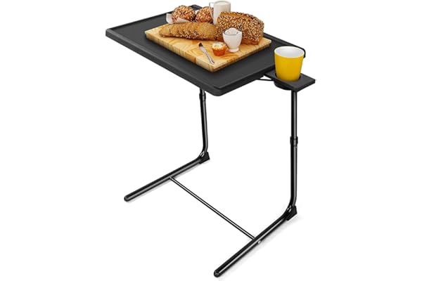 TV Dinner Tray on Bed & Sofa, Comfortable Folding Table with 6 Height & 3 Tilt Angle Adjustments (Black)