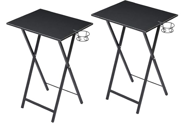 VECELO Folding TV Trays Set of 2 Snack Eating Tables with Cup Holder