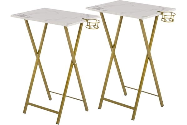 Snack Eating Tables with Cup Holder, Suitable for Couch, Kitchen,Living Room and Bedroom,Stable Metal Frame,Easy Assembly and Storage, Golden