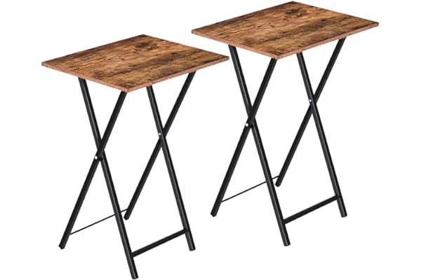 TV Tray, Stable Snack Table for Small Space, Portable Sofaside Table, Easy Assembly and Storage, Ideal for Snacks and Meals in Living Room, Rustic Brown and Black BF15BZ01