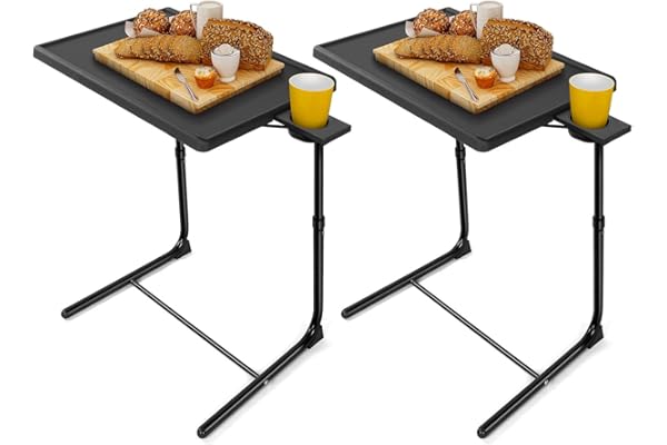 [2 Packs] Adjustable TV Dinner Tray Tables with 6 Height & 3 Tilt Angle, Folding TV Trays with Cup Holder for Bed & Sofa, Multifunctional TV Table Tray for Eating & Reading
