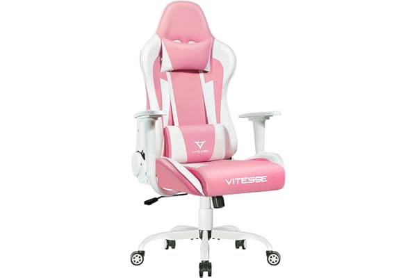 PUKAMI Pink Gaming Chair Cute Kawaii Gaming Chair for Girl Ergonomic Office Desk Chair Racing Office Chair Adjustable High Back Chair Game Chair Swivel Leather Chair with Lumbar Support and Headrest