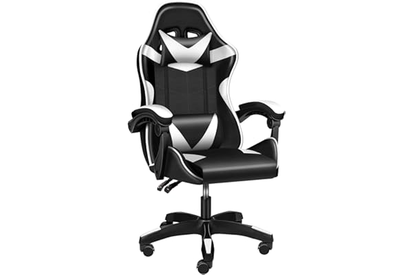 Computer with Footrest and Lumbar Support Height Adjustable with 360°-Swivel Seat and Headrest for Office or Gaming (White)