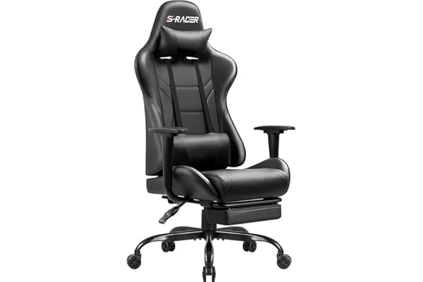 Homall Gaming Chair Computer Office Chair Ergonomic Desk Chair with Footrest Racing Executive Swivel Chair Adjustable Rolling Task Chair (Black)