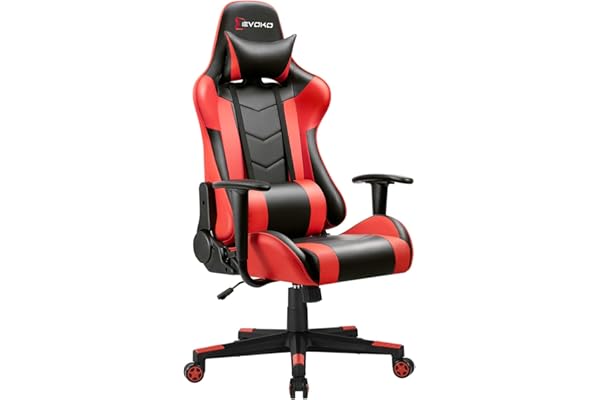 Devoko Ergonomic Gaming Chair Racing Style Adjustable Height High Back PC Computer Chair with Headrest and Lumbar Support Executive Office Chair (Red)