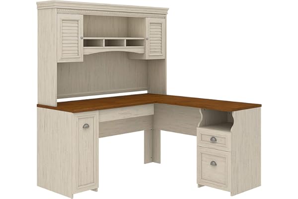 Bush Furniture Fairview L Shaped Desk with Hutch in Antique White