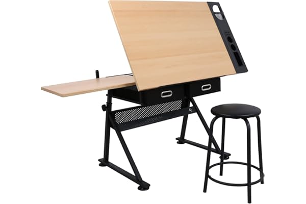 Yaheetech Drafting Table for Artists Art Desk Drawing Painting Studying Table w/Tilted Tabletop Art Craft Work Station for Adults Teens Home Office School Use