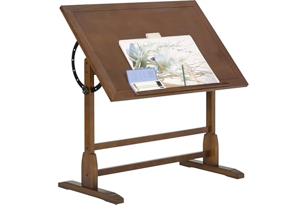 Artist Drawing Table with Height Adjustable & Tilting Large Surface Tabletop,Studio Painting Table,Art Craft Desk for Writing,Reading,Working Desk,Walnut Color