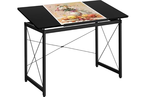 Yaheetech 47"x 24" Drafting Table Drawing/Crafting Table/Desk Art Desk for Artists Tilting Tabletop Basic Drawing Painting Writing Station Studying Desk with Adjustable Tabletop & Pencil Ledge Black