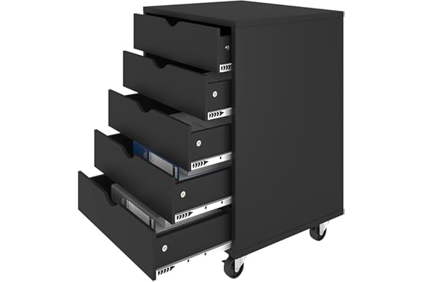 Mobile File Cabinet with Wheels, Home Office Storage Dresser Cabinet, Black