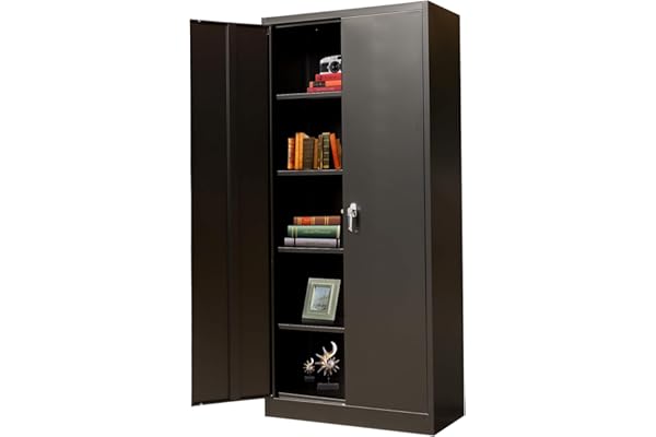 Lockable Steel Storage Cabinet for Office, Garage, Warehouse, 70.86" H x 31.5" W x 15.75" D (Black)