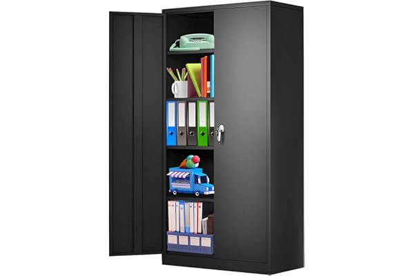 Yizosh Metal Garage Storage Cabinet with 2 Doors and 4 Adjustable Shelves