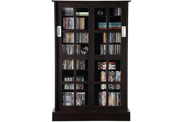 Atlantic Windowpane Media Storage Cabinet with Tempered Glass Pane Styled Sliding Doors