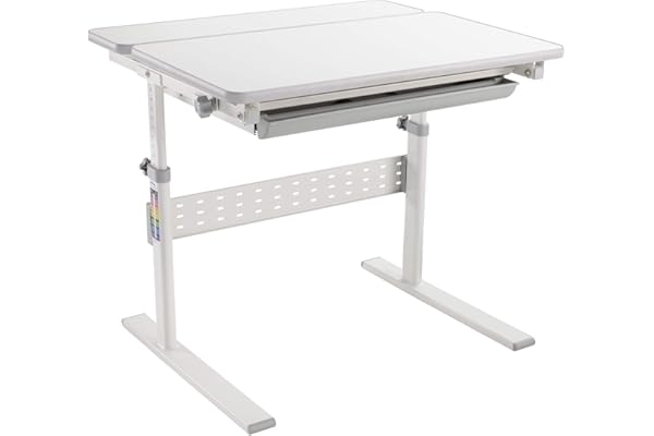 MOUNT-IT! Height Adjustable Desk for Kids [31.5" x 26"] Children's Workstation with Tilting Desktop and Drawer for Storage
