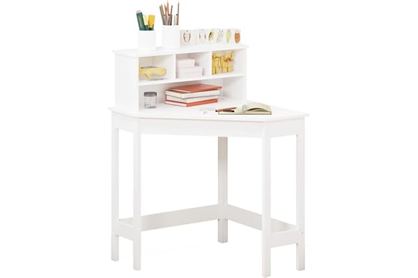 Kids Corner Desk with Reversible Hutch for Girls Boys, Study Computer Desk Workstation & Writing Table for Home School Use, White