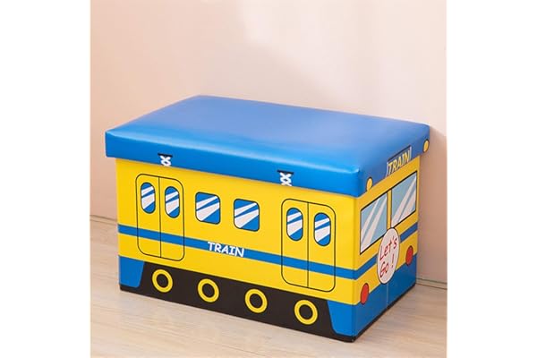 19 Inches Cartoon Folding Leather Storage Ottoman With Foam Padded Seat