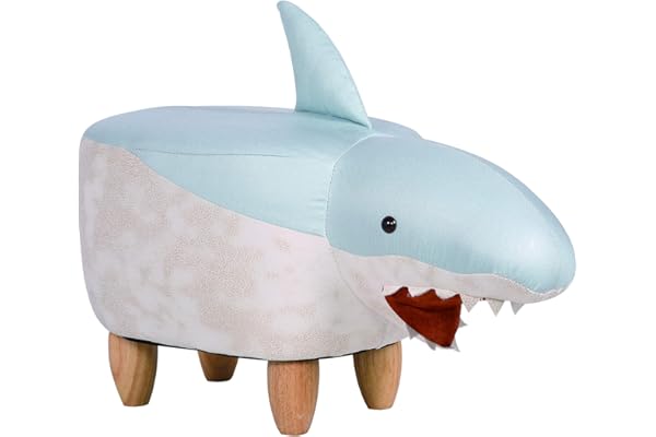 Critter Sitters 15" Blue/White 14" Seat Height Animal Shark-Faux Leather Look-Durable Legs-Furniture for Nursery