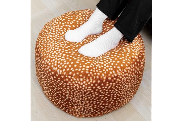 Plush Toy Storage Solution Furry Bean Bag Unstuffed Fur Pouf Soft Faux Fur Organizer with Zipper Pouf 20x20x12 inch (Deer Print)