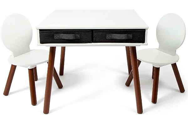 Milliard Kids Mid Century Modern Table and Chair Set Wooden with Storage Baskets, Activity Playset Furniture