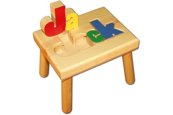 Personalized Wooden Child's Name Puzzle Stool Primary Colors
