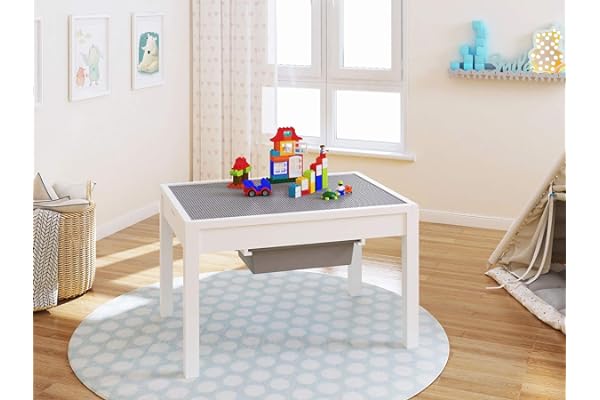 Papablic 2 in 1 Kid Activity Table with Large Storage for Older Kids Compatible with Lego Building Block for Boys Girls
