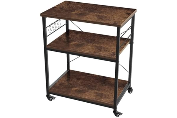 AZL1 Life Concept Kitchen Microwave Cart 3-Tier Kitchen Utility Cart and Rolling Bakers Rack with 5 Hooks for Living and kitchen room