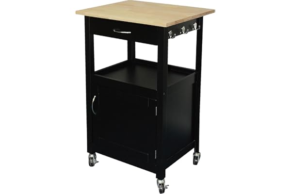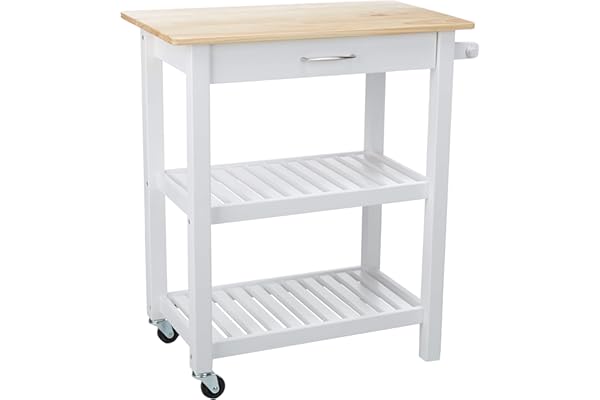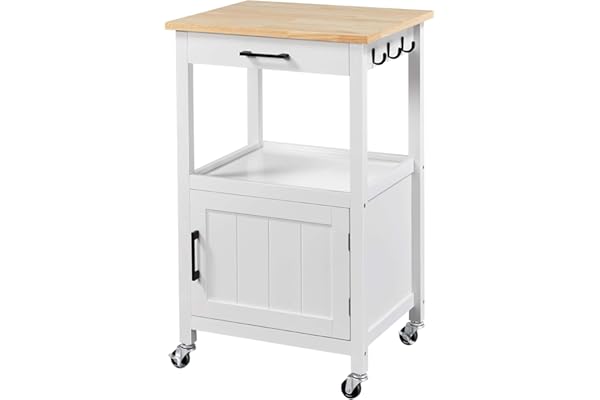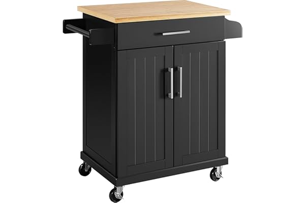 Amazon Basics Kitchen Island Cart with Storage, Solid Wood Top and Wheels