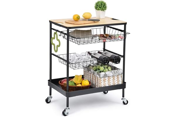 TOOLF Kitchen Island Serving Cart with Utility Wood Tabletop