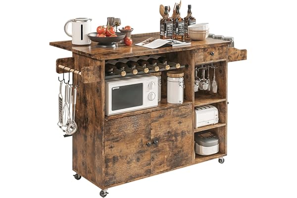 IRONCK Rolling Kitchen Island Cart with Drop-Leaf and Wine Rack