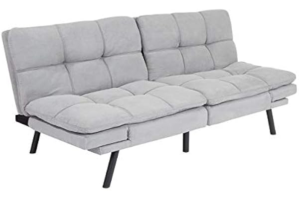Memory Foam Futon Sofa Bed Couch Sleeper Convertible Foldable Gray Suede