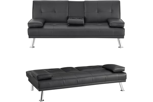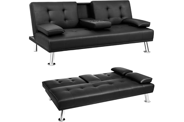 YESHOMY Futon Sofa Bed Modern Faux Leather Convertible Folding Lounge Couch for Living Room with 2 Cup Holders