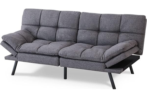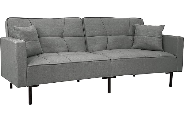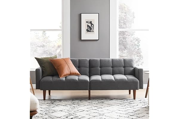 Mopio Aaron Futon Convertible Sofa Sleeper Futon Twin Size with Arms Split Back Design 77.5" (Fabric, Dark Gray)