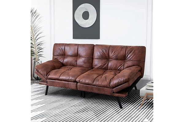 Faux Leather Couch Bed Modern Convertible Folding Recliner for Compact Living Room, Apartment, Studio, Brown