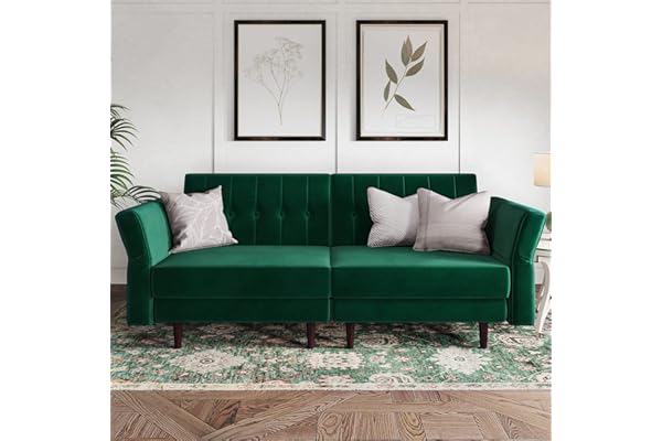 Belffin Velvet Convertible Futon Sofa Bed Memory Foam Futon Couch Sleeper Sofa Green