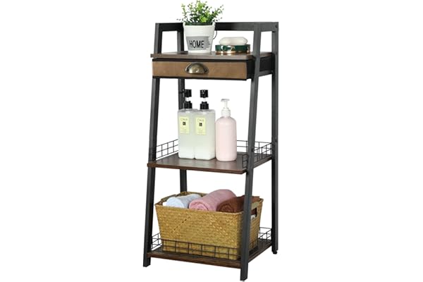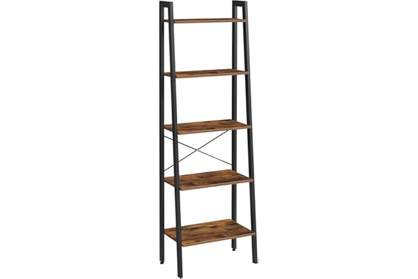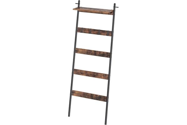 Wall-Leaning Blanket Rack, Ladder Shelf Stand for Bathroom, Living Room, Kitchen, Rustic Brown