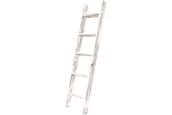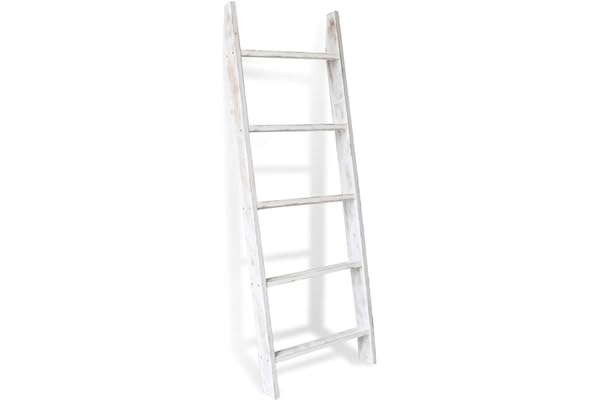 Rustic Blanket Ladder,4.5ft Blanket Ladders,Rustic Wood Ladder,Farmhouse Blanket Ladder, Storage Ladder Quilt Rack, Assembly Required, 4.5-Feet,White