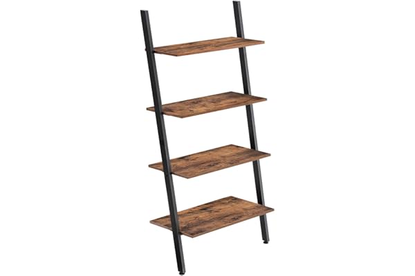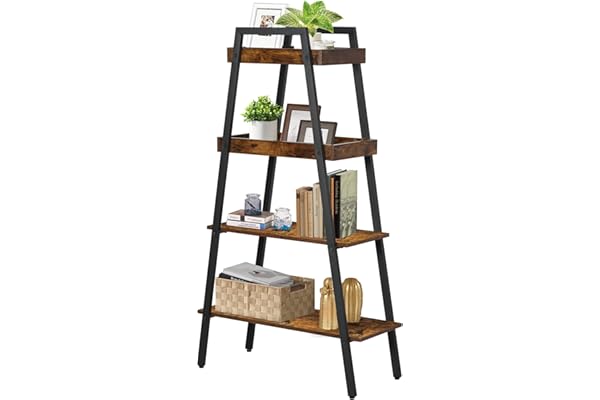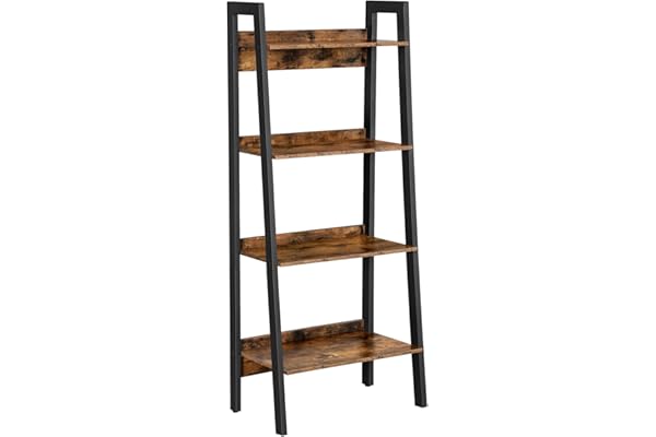 4-Tier Bookshelf, Storage Rack Shelves, for Living Room, Kitchen, Office, Steel, Stable, Sloping, Leaning Against The Wall, Industrial, Rustic Brown and Black ULLS43BX