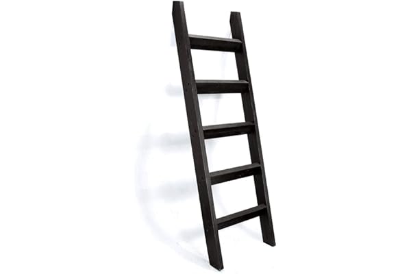 Premium Wood Rustic Ladder Shelf | Ladder Shelf for Quilt | Rustic Farmhouse Decor | Vintage Wooden Ladder Shelf (Thick,Black)