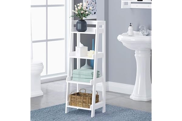 Bathroom Shelf Freestanding, 4-Shelf Spacesaver Open Wood Shelving Unit, Ladder Shelf (White)