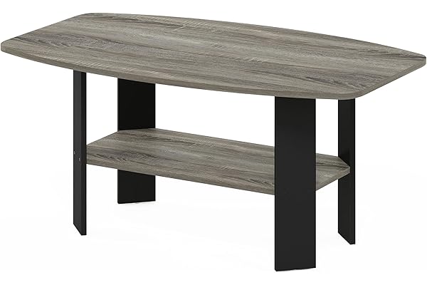C Shaped End Table for Sofa Couch and Bed, Gray and Black
