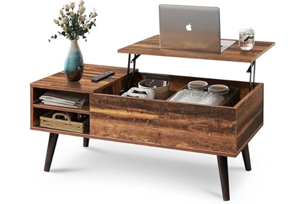 WLIVE Wood Lift Top Coffee Table with Hidden Compartment and Adjustable Storage Shelf