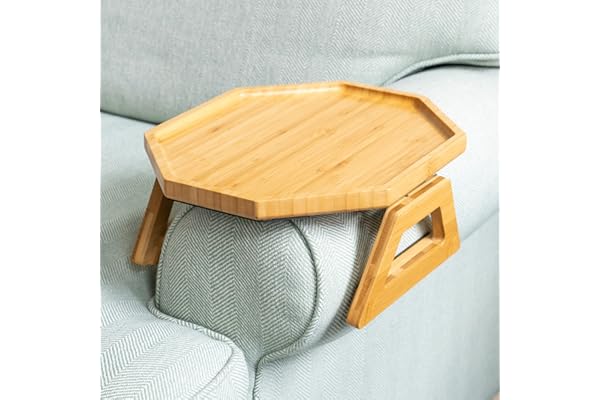 Bamboo Sofa Tray Table Clip on Side Table for Wide Couches Arm